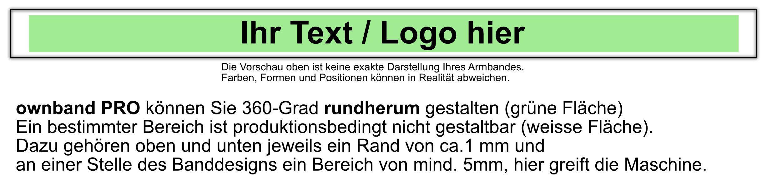 Ein bestimmter Bereich ist produktionsbedingt nicht gestaltbar (weisse Fläche).