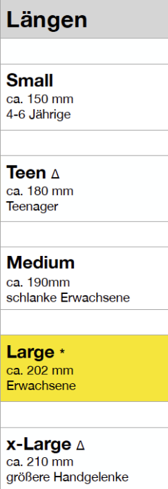 X-large ca. 210 mm Umfang = für stärkere Handgelenke